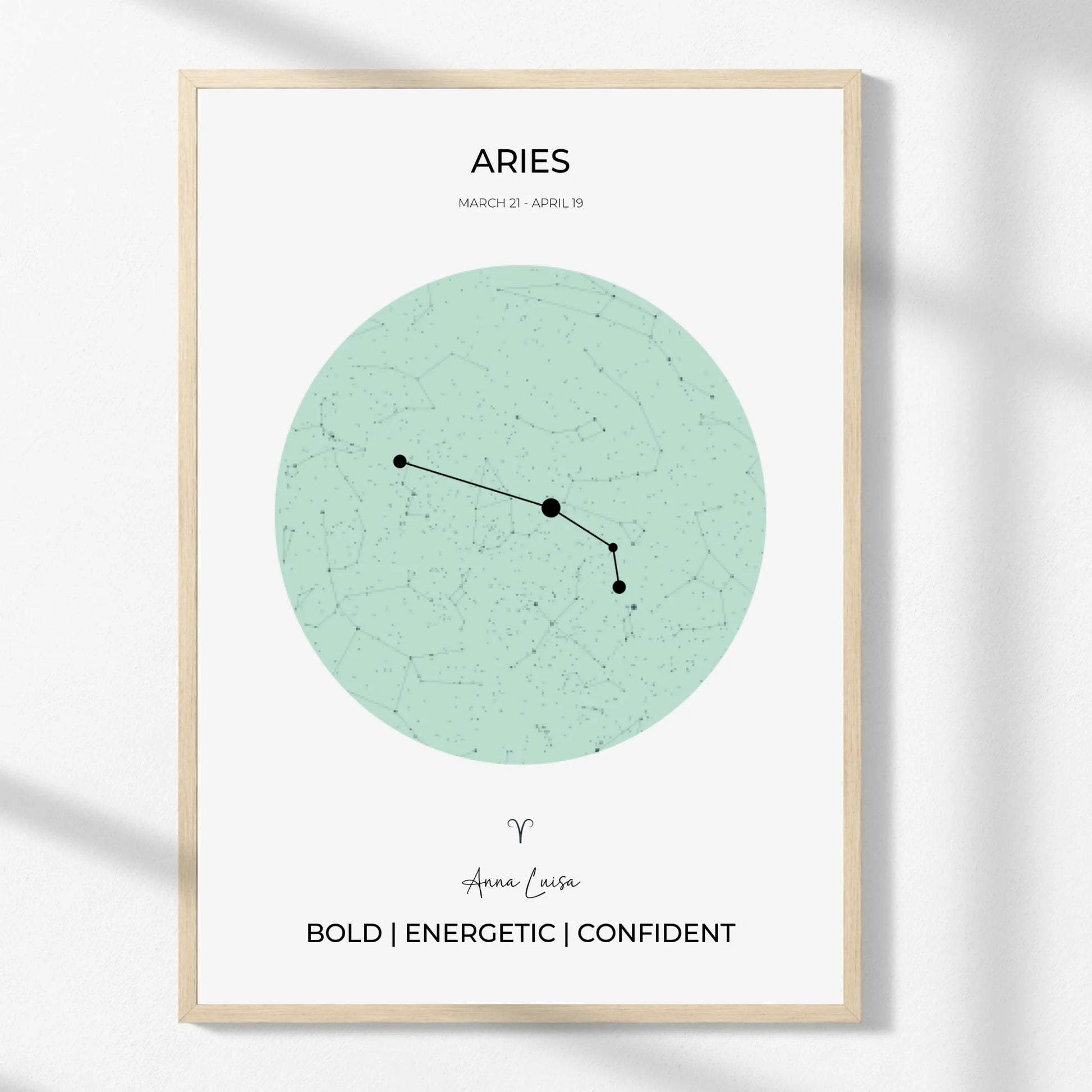 Este póster celebra tu signo zodiacal con una elegante representación de la constelación y su símbolo, todo en un diseño moderno y armonioso. Ideal para decorar con intención o como regalo con alma, es una forma sutil y bella de expresar tu esencia o la de alguien especial.